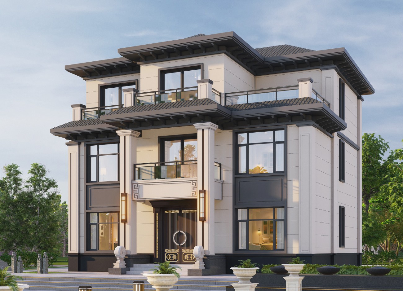 西双版纳17 三层新中式(10x12米)-【易设计】
